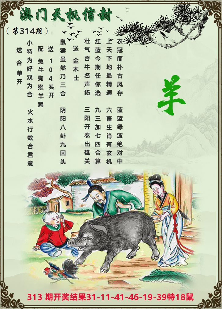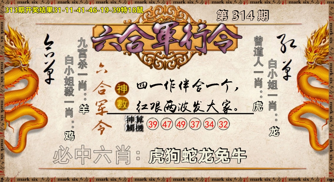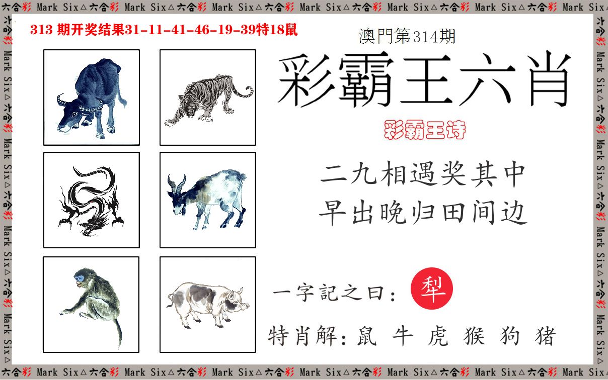 解:猪前狗后结亲家,得猪狗,看看地支是哪家,是地肖蛇羊鸡狗鼠虎,开狗32