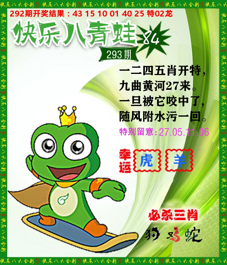 解:猪前狗后结亲家,得猪狗,看看地支是哪家,是地肖蛇羊鸡狗鼠虎,开狗32