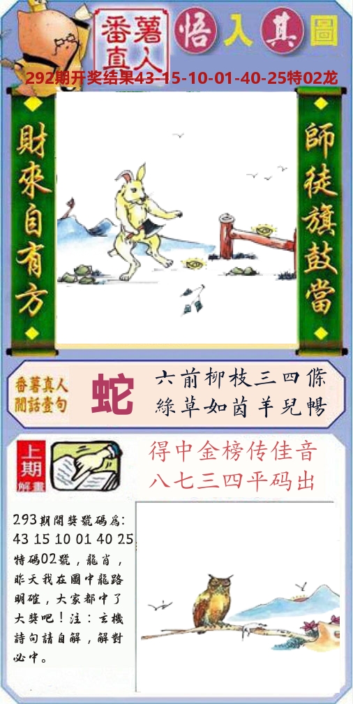 解:金风解五行金的生肖:猴鸡,名扬天下,可解天肖:牛兔龙马猴猪,开兔03