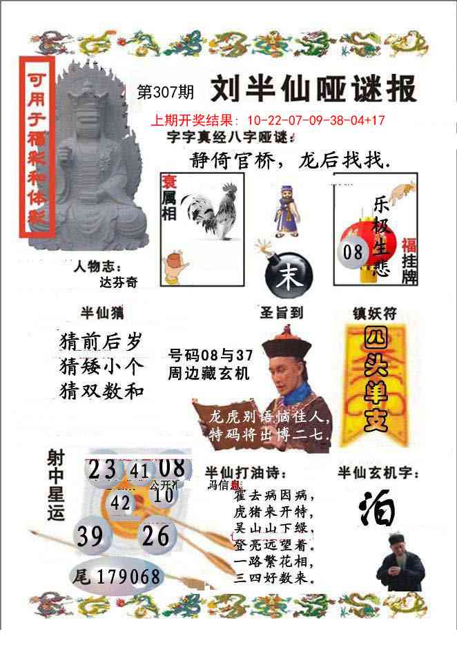 黄大仙灵码B 刘半仙哑谜 佛祖送灵码
